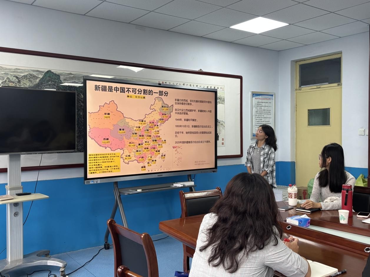 会上,8名少数民族师生代表依次进行自我介绍,分享了在学院的学习、工作与生活感悟。其中,新疆籍维吾尔族学生作为代表,结合自身经历生动介绍了家乡新疆的人文和习俗:从壮丽的天山山脉、辽阔的塔克拉玛干沙漠等自然风光,到热情的萨玛舞、香甜的瓜果美食等风土人情,再到独具特色的维吾尔族传统节日与文化习俗,全方位展现了新疆的独特魅力。同时,该学生还动情讲述了党和国家对新疆发展的关怀与支持,以及近年来新疆在基础设施建设、教育、经济发展等方面取得的显著成就,言语间满是对家乡的热爱与自豪,更坚定表达了拥护民族团结、共筑祖国繁荣的决心,引发在场师生的强烈共鸣。